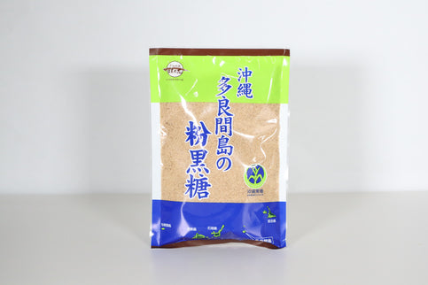 多良間島には山や川が無く島全体のほとんどがサトウキビ畑と牧場で、多良間島の黒糖 生産量は沖縄県全体の生産量約40%を占め、国内で最大の黒糖産地として全国に知られて います。このような風土で栽培されたサトウキビを圧搾し、煮詰めて粉砕したのが 「多良間島の粉黒糖です」。